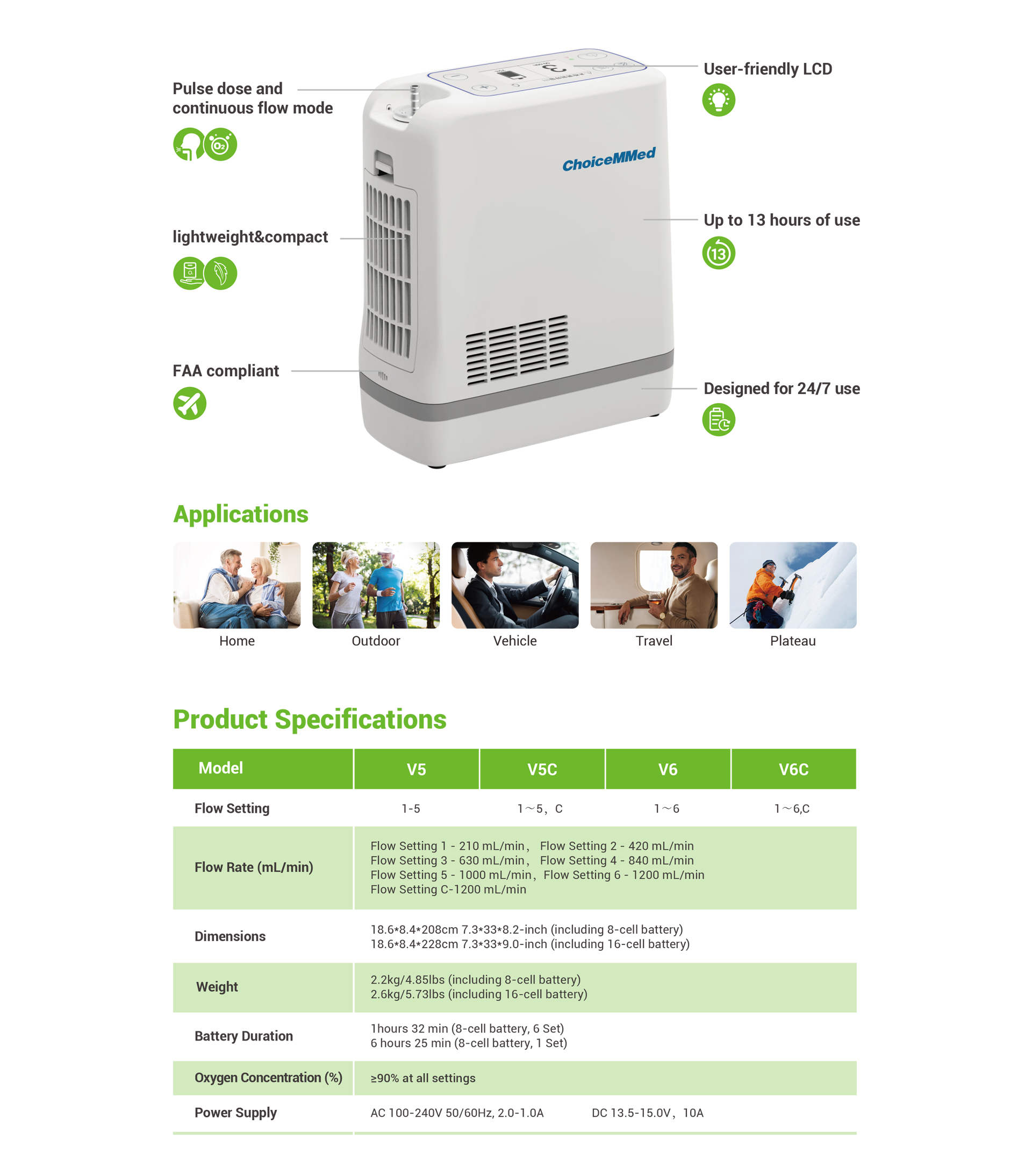 Portable Oxygen Concentrator V5 / V5C / V6 / V6C